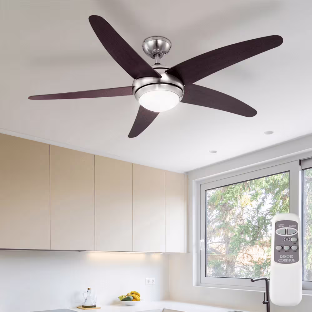Wentylator sufitowy z oświetleniem łączy w sobie dwie ważne funkcje: cyrkulację powietrza i źródło światła. Jest to szczególnie praktyczne w pomieszczeniach, w których liczy się każda instalacja sufitowa - np. w salonie, sypialni lub nad stołem w jadalni.
