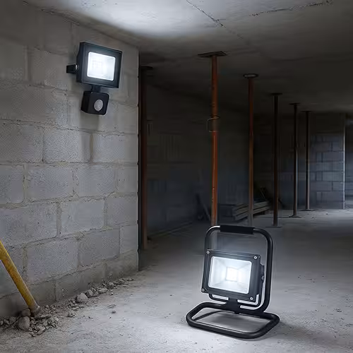 Światło jest często ograniczone w pomieszczeniach. Kompaktowe reflektory budowlane LED ze stojakiem lub magnesem mogą tu pomóc. Można je umieścić blisko powierzchni roboczej. Modele z akumulatorem umożliwiają pracę bezprzewodową - idealne do instalacji, suchej zabudowy lub prac malarskich. Mobilna instalacja oszczędza czas i zapewnia elastyczność.