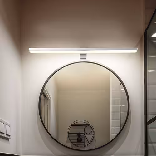 Liniowe oświetlenie lustrzane LED o matowych powierzchniach wygląda elegancko i dyskretnie. Uzupełniają wystrój wnętrz w jasnych korytarzach lub minimalistycznych sypialniach.
