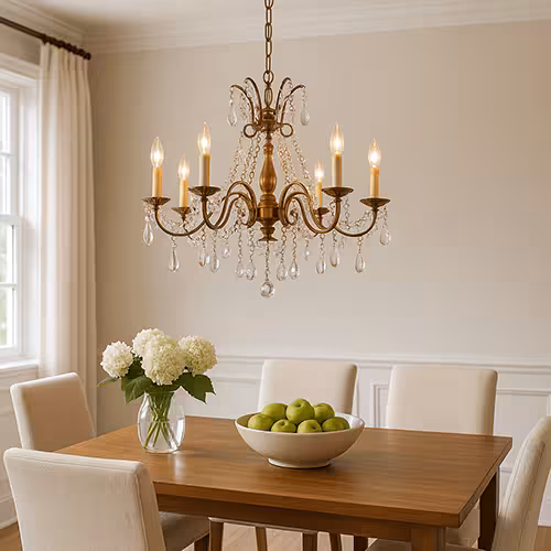 Żyrandol do jadalni: Żyrandol dodaje elegancji i charakteru. Niezależnie od tego, czy jest klasyczny z kryształkami, czy w nowoczesnej interpretacji - przyciąga uwagę każdego. Jest szczególnie skuteczny w pomieszczeniach z wysokimi sufitami.
