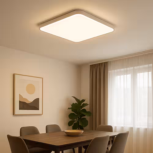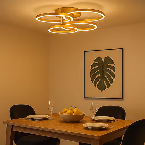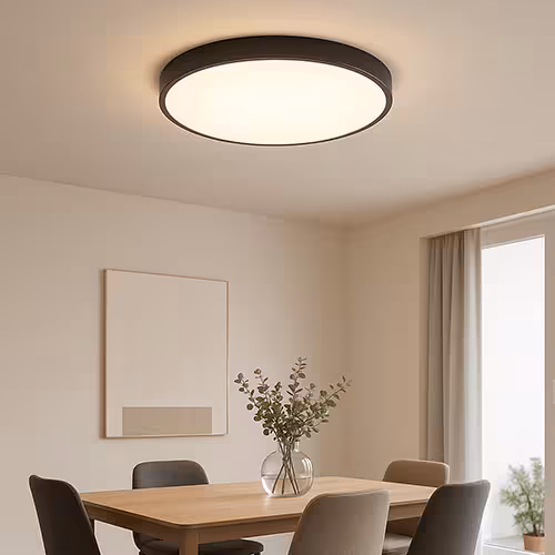 Lampy sufitowe dojadalni: Lampy sufitowe są idealne do równomiernego oświetlenia otoczenia. Obejmują całe pomieszczenie i tworzą jasną, przyjazną atmosferę.