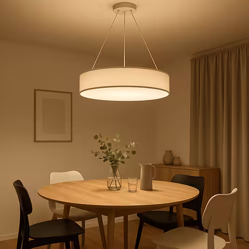 Ciepłe białe światło jest zachęcające i przytulne. Idealne na długie wieczory przy stole. Neutralna biel jest odpowiednia, jeśli jadalnia służy również jako miejsce pracy.