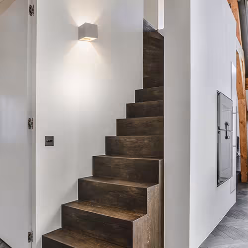 Funkcjonalność jest najwyższym priorytetem na klatkach schodowych . Dzięki odpowiedniemu oświetleniu można uniknąć ryzyka potknięcia, ciemnych zakamarków i niewyraźnych ścieżek. Oprawy blisko ściany, reflektory stopniowe lub oprawy wiszące zapewniają dobrą widoczność i dobre samopoczucie. Oświetlenie musi być solidne i niezawodne - nawet przy częstym użytkowaniu.
