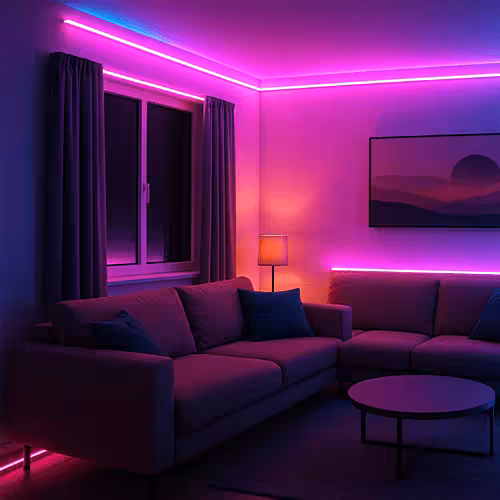 Taśmy LED z zamontowanymi na stałe diodami LED za meblami, we wnękach lub pod półkami ściennymi dyskretnie ustawiają scenę w salonie. W połączeniu ze źródłami światła LED powstają nastrojowe zmiany kolorów lub ciepłe białe światło - w zależności od nastroju.
