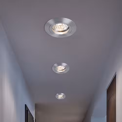 Reflektory wpuszczane z gniazdami GU10 umożliwiają prostą wymianę żarówek. Warianty z zainstalowanymi na stałe diodami LED są zalecane dla szczególnie dyskretnego wyglądu . Znikają one w suficie i pozwalają światłu zająć centralne miejsce.