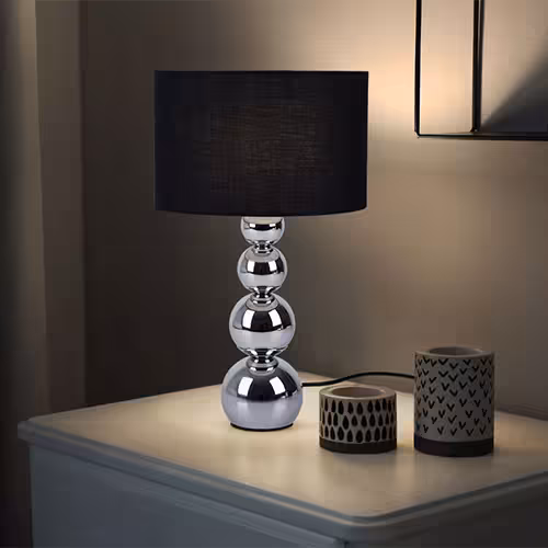Lampy stołowe z kloszem oferują imponującą różnorodność kolorów i wzorów, które płynnie łączą się z różnymi sytuacjami życiowymi. Elegancką i nowoczesną atmosferę zapewni na przykład chromowana lampa stołowa z czarnym tekstylnym kloszem i 3-stopniowym ściemniaczem dotykowym, idealna do salonu lub sypialni.
