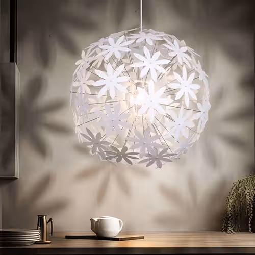 Przyciągające wzrok i artystyczne lampy wiszące tworzą idealną atmosferę zarówno w salonie, jak i sypialni. Okrągła lampa wisząca w kwiatowy wzór wniesie powiew świeżości do Twoich czterech ścian! Biały abażur nadaje pomieszczeniu delikatną i uspokajającą atmosferę. Niezależnie od tego, czy jesteś sam, czy we dwoje - dzięki tej lampie możesz stworzyć miejsce do relaksu.