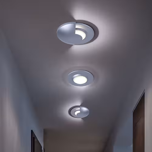 Wbudowane reflektory LED w przedpokoju zapewniają dyskretne, ale skuteczne oświetlenie, które równomiernie oświetla całe pomieszczenie. Zapewniają bezpieczeństwo, unikając ryzyka potknięcia. Jednocześnie płynnie wtapiają się w sufit i sprawiają, że korytarz wydaje się większy.