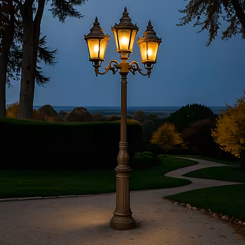 - Ogrody i prywatne obszary zewnętrzne: W ogrodzie kandelabr działa jako stylowy dodatek do rabat kwiatowych, trawników lub patio. Zapewnia światło wzdłuż ścieżek, podkreśla centralne punkty i nadaje strukturę posesji.