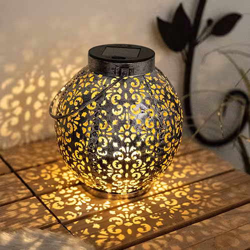 Latarnie solarne są dostępne w wielu materiałach: stali nierdzewnej, plastiku, bambusie lub szkle. W zależności od materiału i kształtu powstaje inna gra światła. Metalowe modele z ażurowymi wzorami rzucają fascynujące cienie.