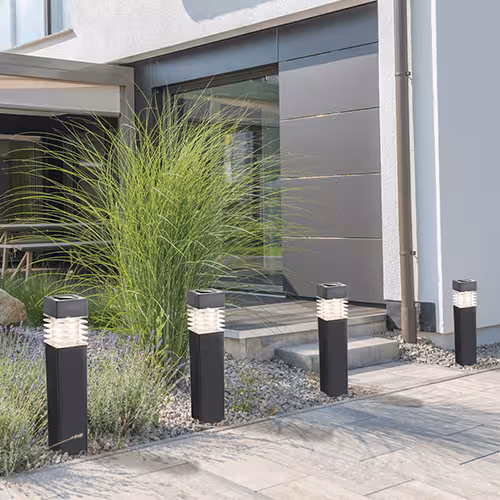 Lampy solarne w kształcie słupka są wyższe niż lampy na cokole i rozprowadzają światło na większym obszarze. Mają nowoczesny wygląd i są szczególnie skuteczne na podjazdach lub długich ścieżkach ogrodowych.