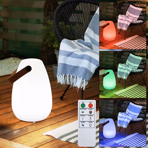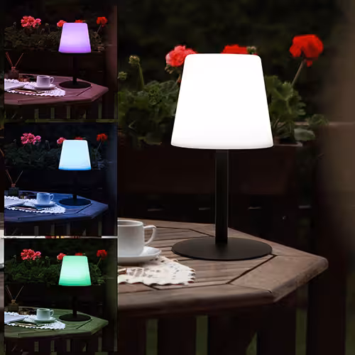 Wzornictwo również odgrywa ważną rolę przy zakupie, ponieważ niezależnie od tego, czy jest zielona, niebieska czy fioletowa - zewnętrzna lampa stołowa w odpowiednim kolorze pasuje jak ostatni element układanki obok kolorowych kwiatów i klombów. W połączeniu z odpowiednią barwą światła można uzyskać stylowe efekty świetlne, które nadadzą aranżacji ogrodu to coś. Od ciepłej bieli, przez światło dzienne, aż po chłodną biel - każdy znajdzie odpowiednie światło dla siebie. Nasza rada: Ciepłe białe światło na relaksujące wieczory. A jeśli nie możesz się zdecydować, po prostu użyj funkcji zmiany koloru , aby wybrać odpowiednią barwę światła w danym momencie.