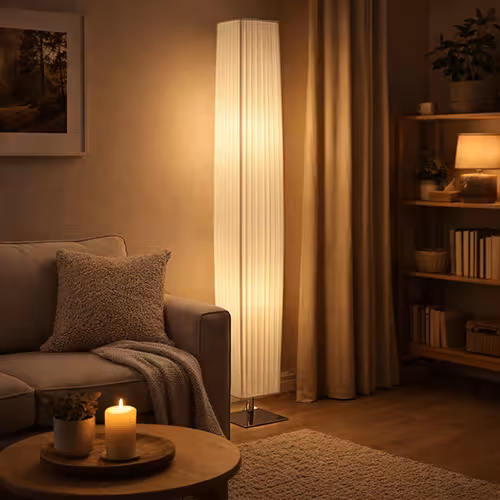 - Lampa podłogowa w kształcie kolumny: Dzięki eleganckiemu i minimalistycznemu wzornictwu, smukłe i proste kształty przypominające kolumnę są szczególnie atrakcyjne. Modele w kształcie kolumny dobrze pasują więc do nowoczesnych wnętrz.