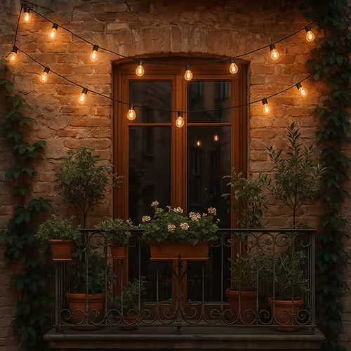 Rozciągnij sznur świateł nad pergolą, wzdłuż parapetu balkonu lub wokół donic. Nawet subtelny akcent świetlny całkowicie zmieni wieczorny nastrój. - Kemping i podróże